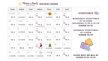 Regular Hours resume on New Years Day (1/1 we will be open!)